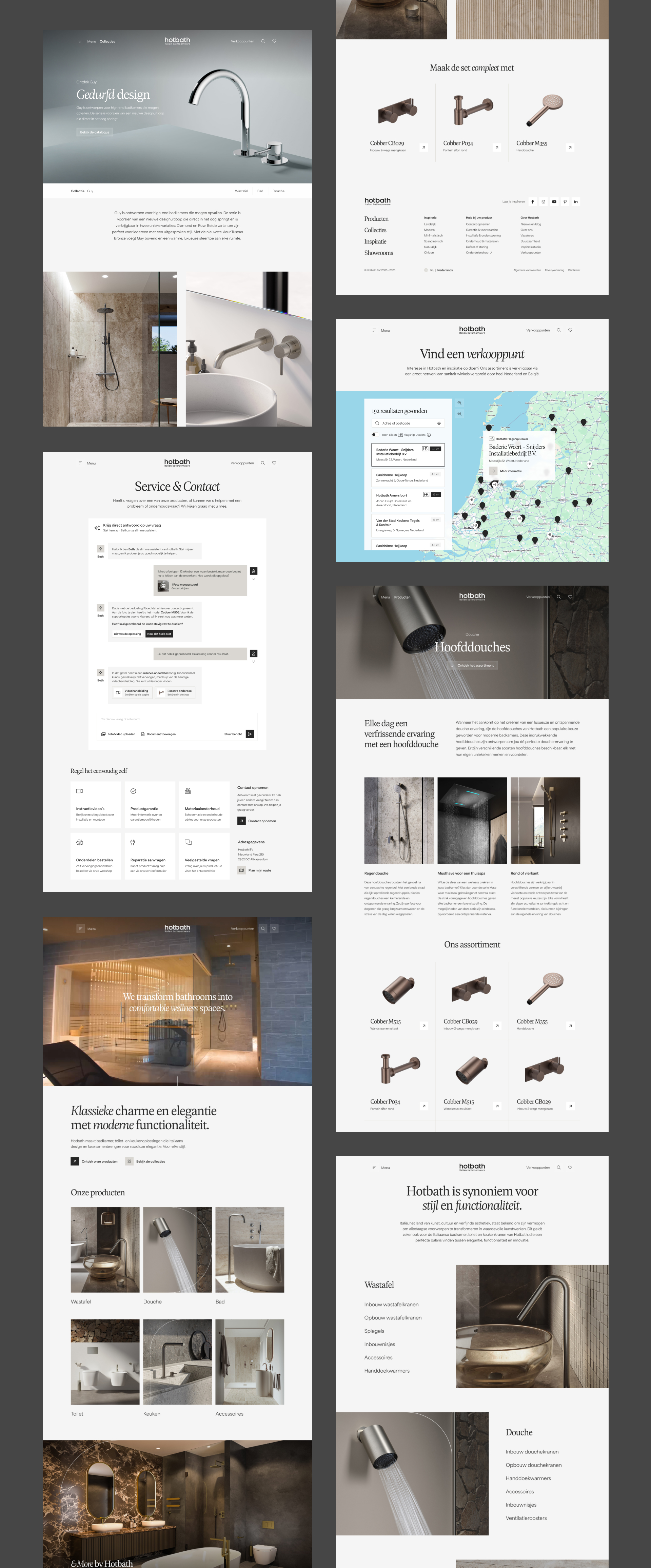 Welkom in de wereld van Hotbath. Waar design, innovatie en vakmanschap samenkomen om badkamers naar een hoger niveau te tillen. Als verlenging van de recent vernieuwde Brand Identity van Hotbath, ontwierp ik een volledig vernieuwde website die naadloos aansluit op hun opgefriste branding. Strakke lijnen, royale ruimte voor inspirerende beelden en een verfijnde, luxe look-and-feel vormen de basis. Het resultaat is een digitaal merkverhaal dat de kwaliteit en elegantie van Hotbath-producten krachtig tot leven brengt.